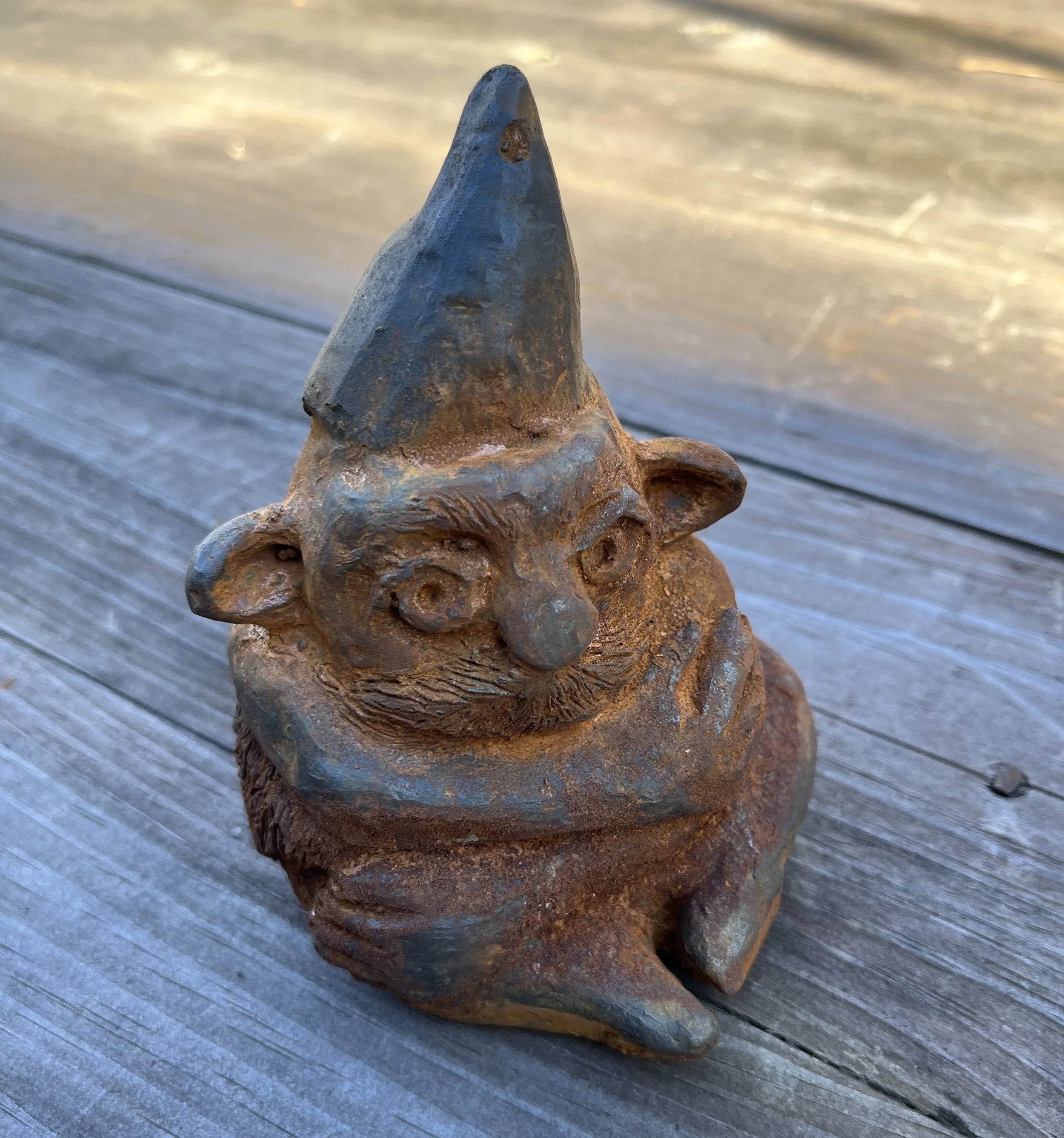 cast iron with graphite, spray paint and rust finishes